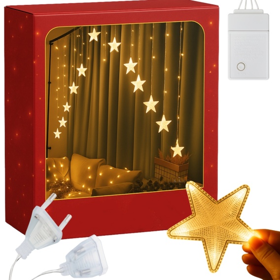 - Zestaw zbudowany z 16 zwisających odcinków z gwiazdami