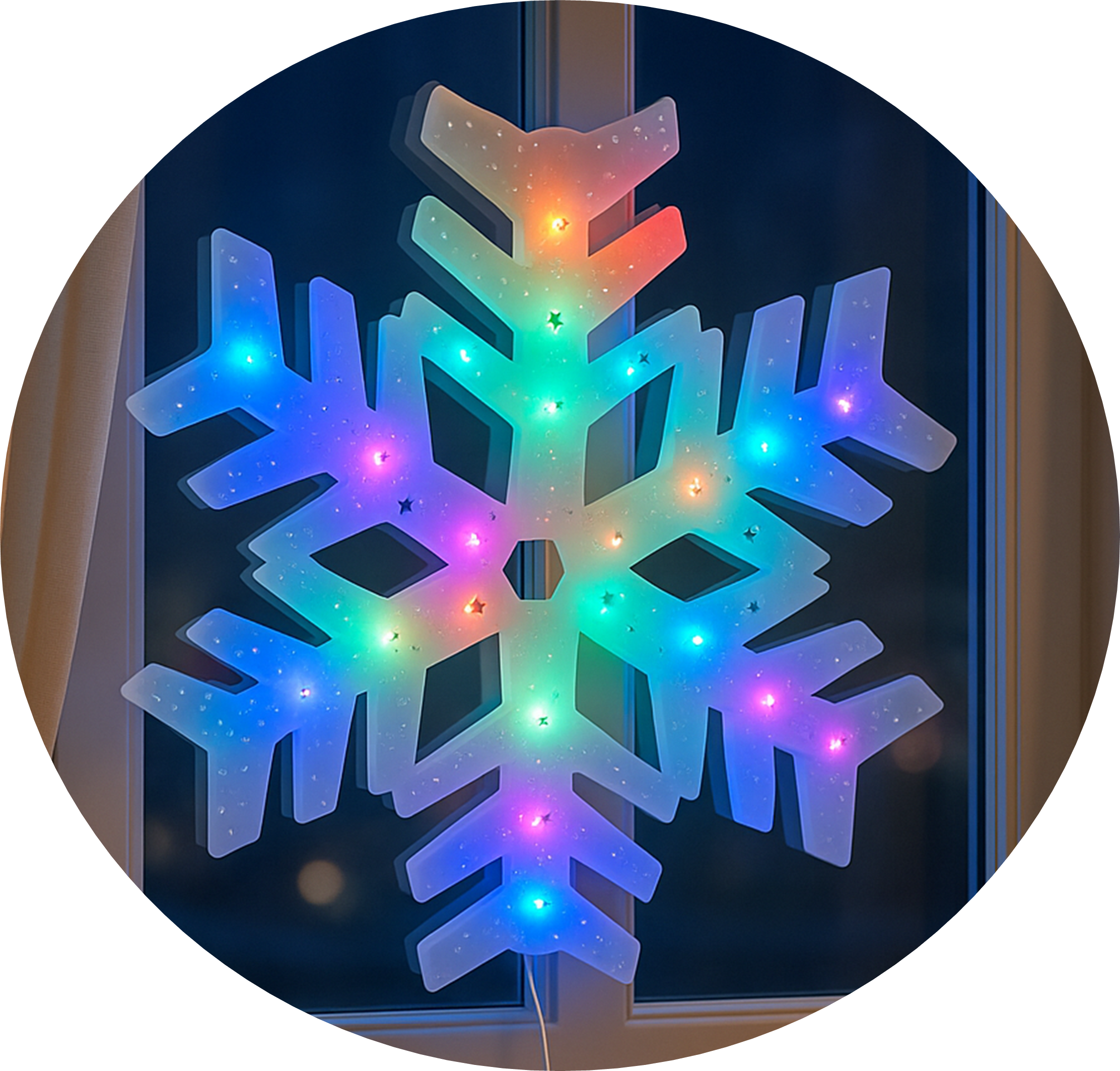 Rozświetl wnętrze magicznym blaskiem Świąt dzięki świecącej ozdobie LED w kształcie śnieżynki.Ta efektowna dekoracja o średnicy 40 cm przyciąga uwagę pięknym, wielokolorowym światłem, tworząc wyjątkowy, świąteczny nastrój zarówno w domu, jak i w przestrzeniach komercyjnych.